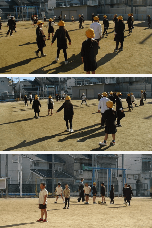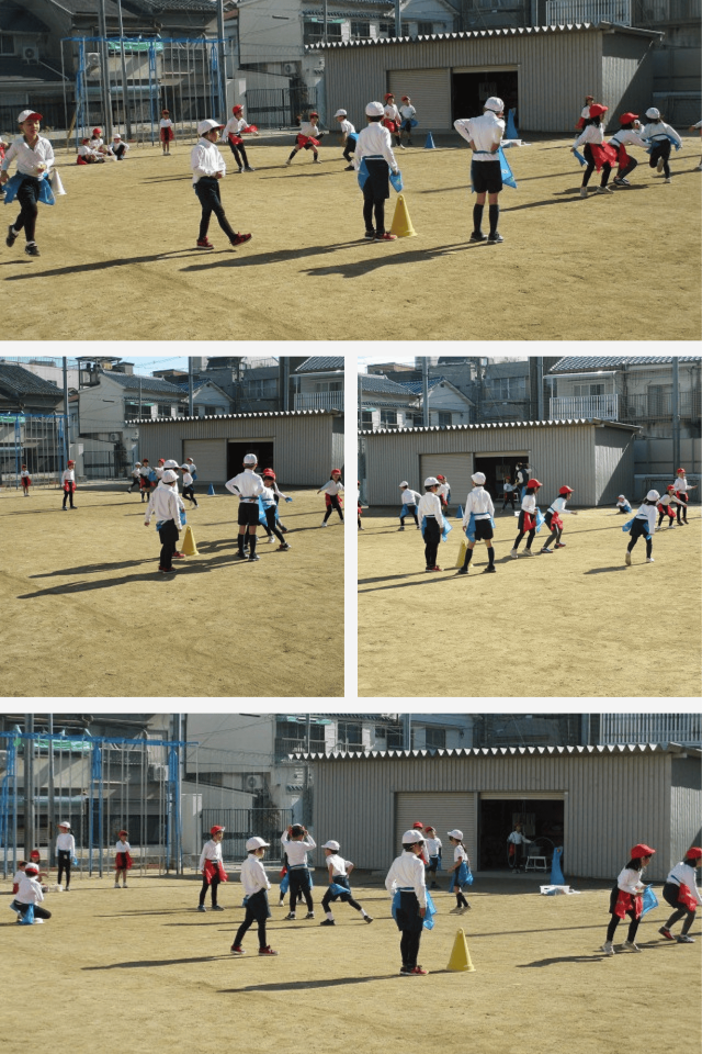 ボールをもって走ったり、味方にパスをつないだりしながら、得点をめざして攻めるゲームです。