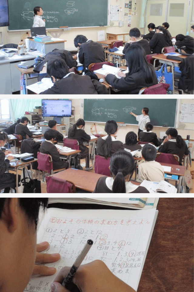 子どもたちは、ノートや黒板を見ながら、自分なりの考えを次々に出していきます。