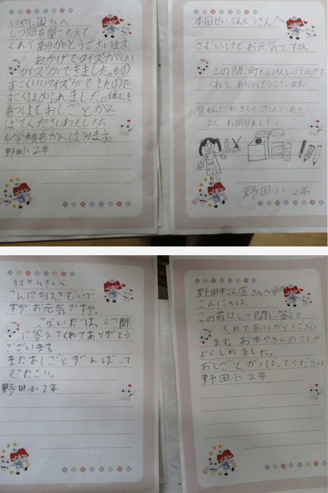 生活科の学習で、2学期に行った「まちたんけん」でお世話になった方々へ、お礼のお手紙を書きました。