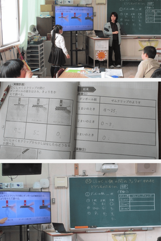 今日は、「磁石と鉄の間の距離が変わると、磁石の働きはどうなるのか」について実験し、結果をもとに考えをまとめました。