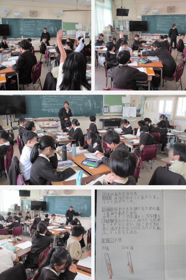 理科の時間は、水の温まり方について学習しています。
