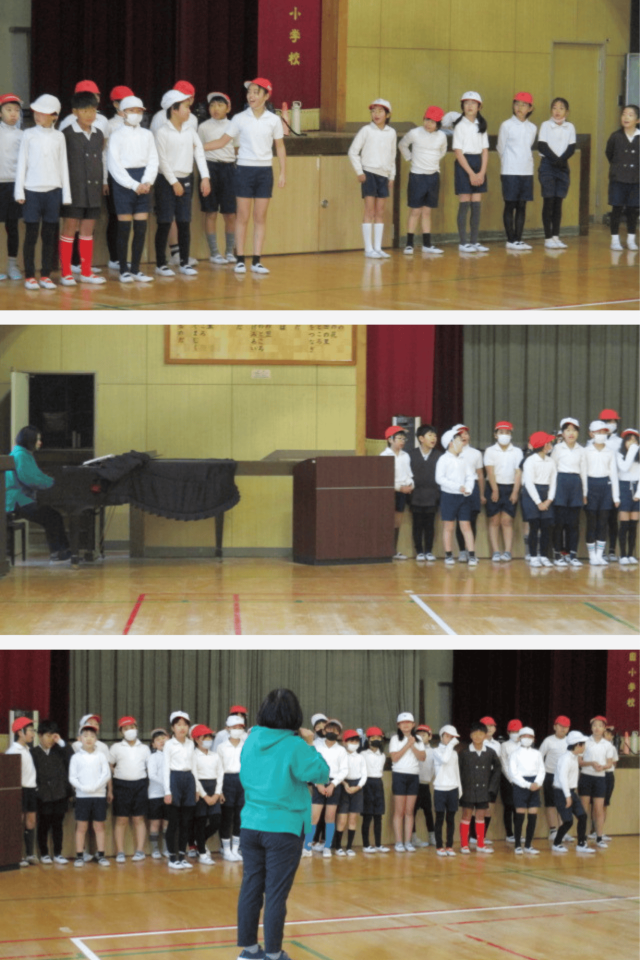 広い講堂に、子どもたちの澄んだ歌声がやさしくひびき、気持ちを一つにして歌う姿が見られました。