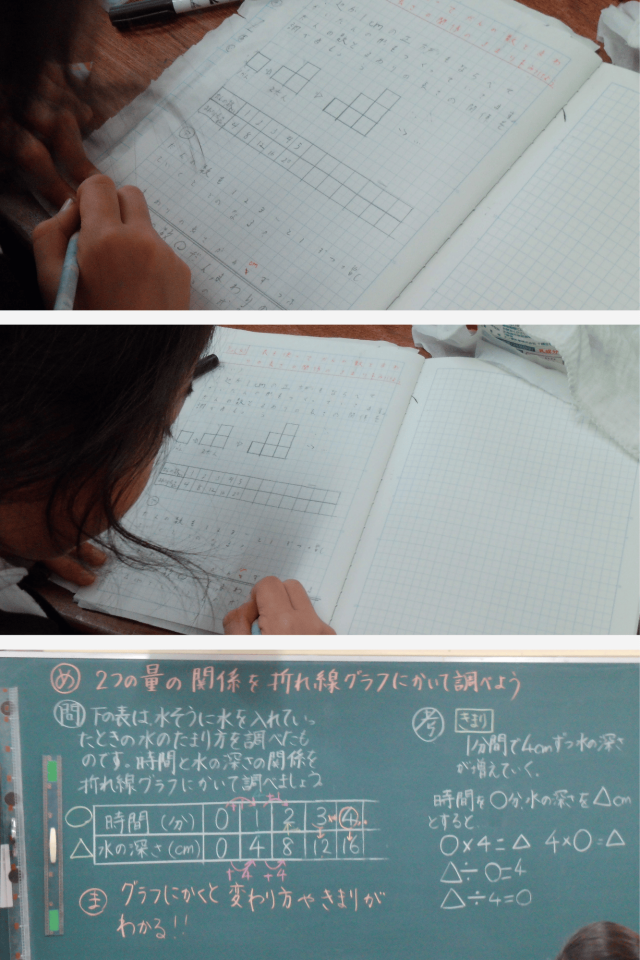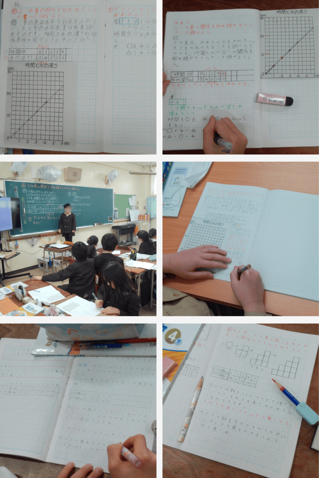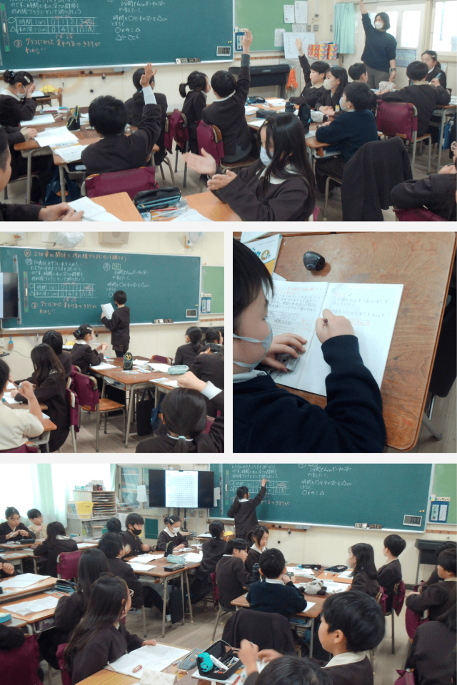 折れ線グラフを使うことで、2つの量の関係が分かりやすくなり、考えを深める算数科の時間となりました。