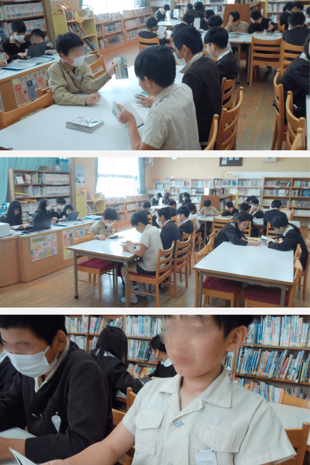 図書室では、子どもたちがそれぞれ自分の読みたい本を手に取り、静かに読書に親しんでいました。