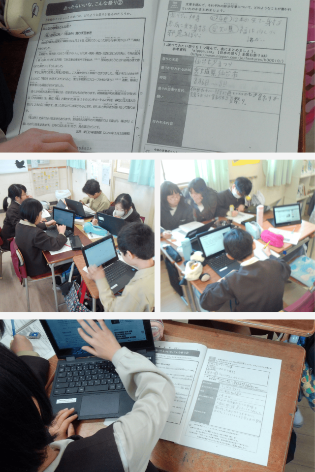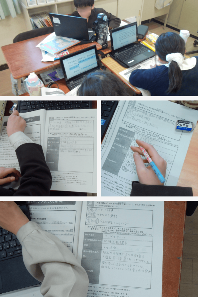 読み取る力と調べる力、そして整理する力をつなげながら、「もし自分たちが祭りをつくるなら…」という発想へと学びを広げています。