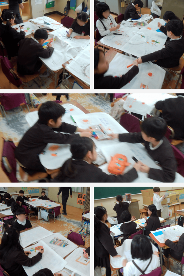 思いついた言葉をすばやく形にしようとする姿や、友だちの発想に驚く様子も見られ、教室は大いに盛り上がっていました。