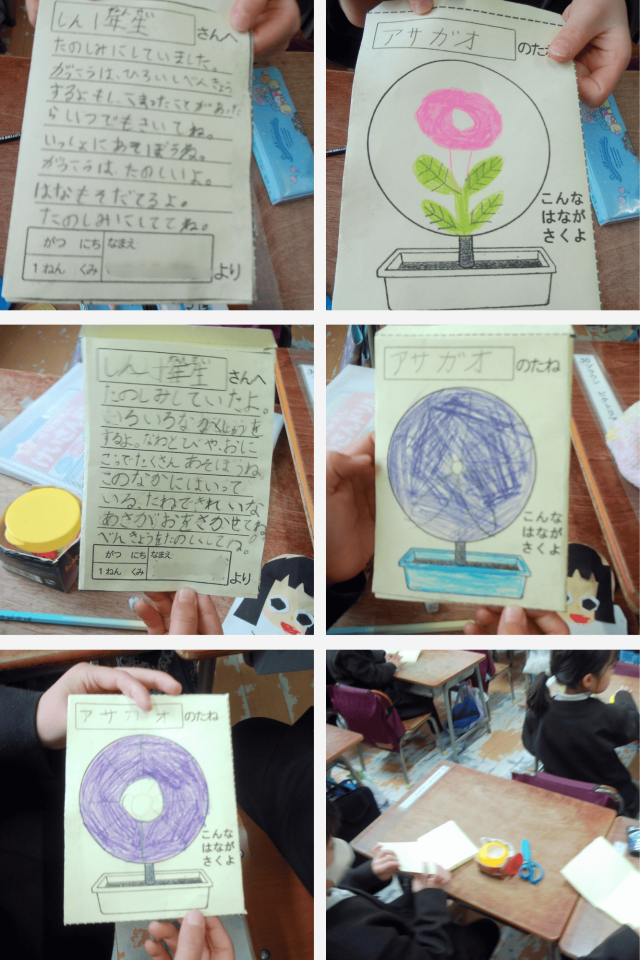 1年生が育てたアサガオからとれた種を、次の1年生へプレゼントする準備をしました。