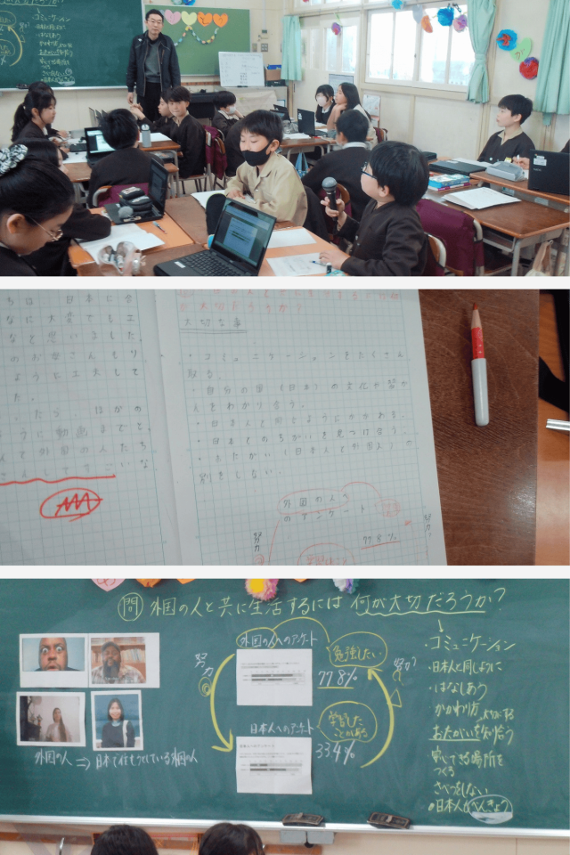 子どもたちは、「言葉が通じないと困ることがある」「生活のルールがちがうこともある」といった気づきを出し合っていました。