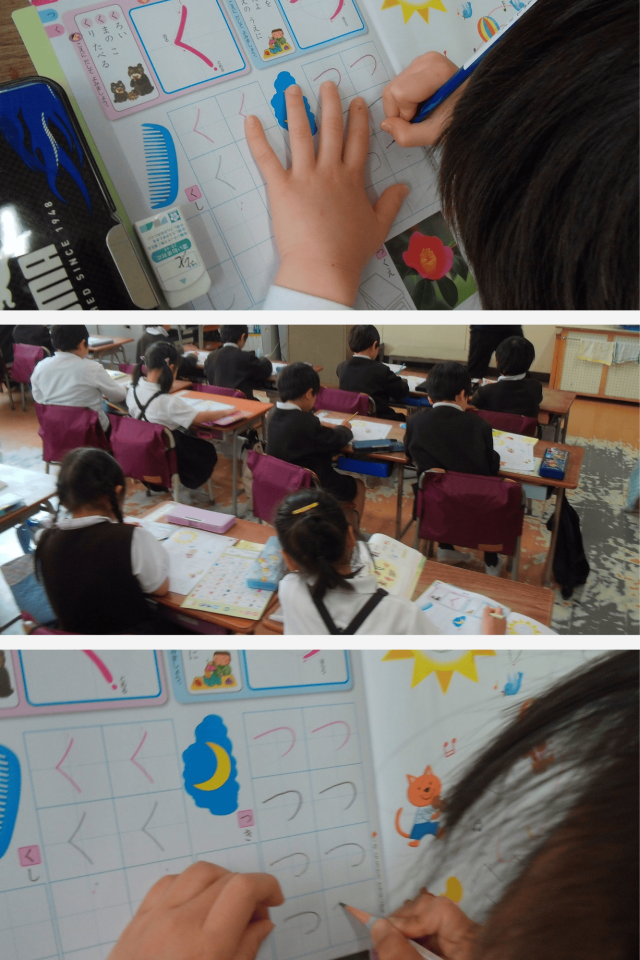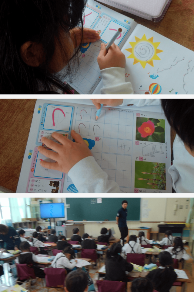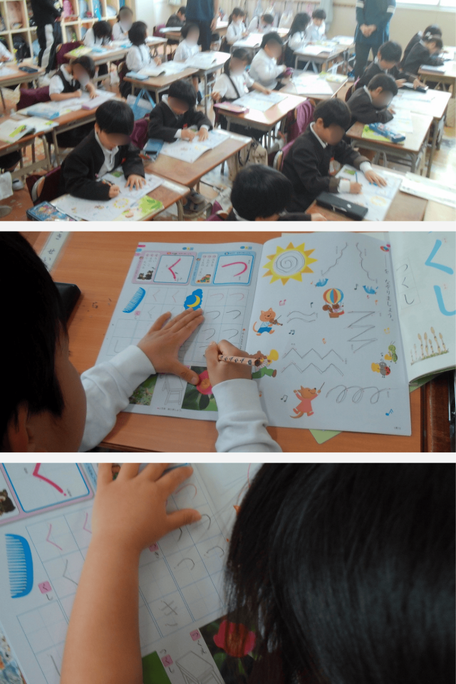 はじめてのひらがなの学習に、わくわくした様子の子どもたち。