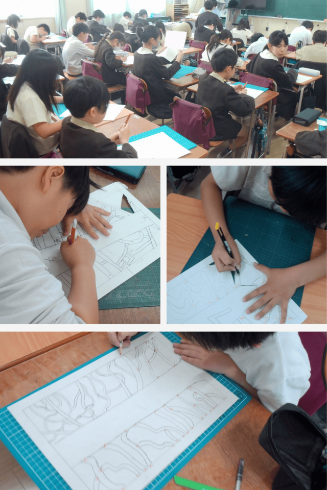 図工科では、カッターナイフを使って木の絵をつくる学習に取り組みました。