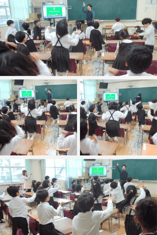 友だちと動きをそろえたり、笑顔で楽しんだりする様子から、教室全体が明るい雰囲気に包まれていました。