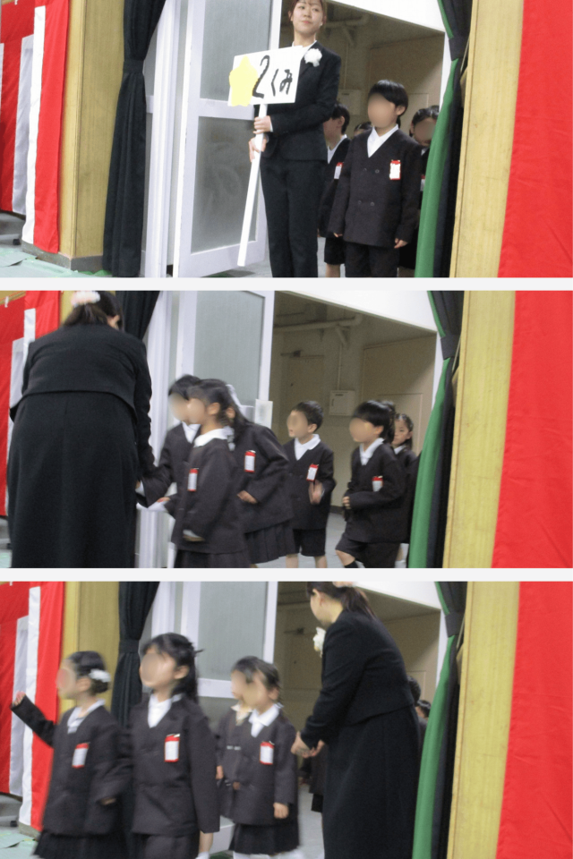 中には、少し不安そうな表情の子もいましたが、保護者の方や会場のあたたかい雰囲気に包まれ、落ち着いて入場することができました。