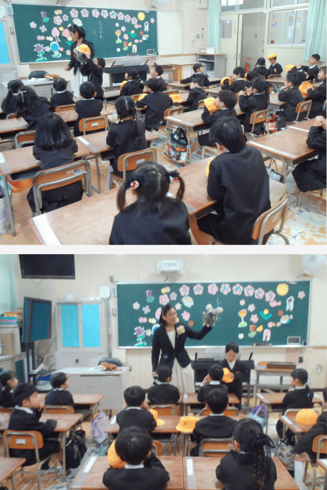 1年生:ひらがな・カタカナ・漢字を読んだり書いたりできるようになり、話を聞いたり前で発表したりすることもできるようになりました。