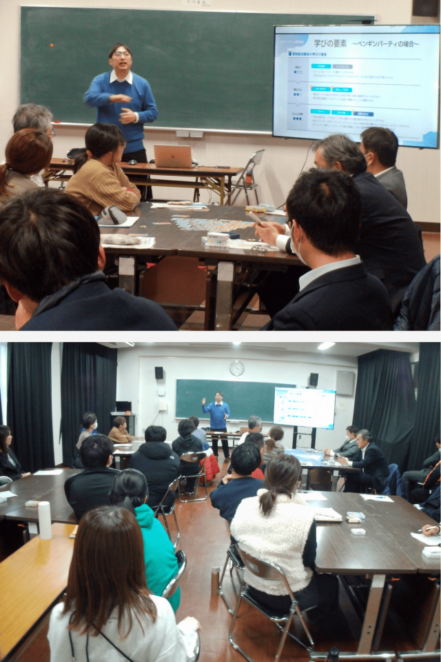 途中、「ナンジャモンジャ」や「ペンギン パーティ」などのボードゲームを参会者全員で体験しました。