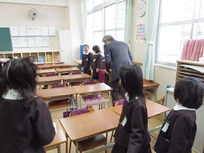 ボランティアの方は3名のため、1−3は出水先生に読み聞かせをしてもらいました。 -