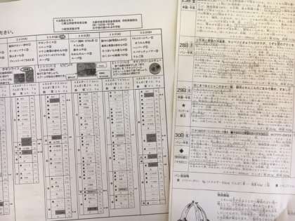 P.S.下の写真で、右側が小学校の献立表。左側が中学校の献立表です。