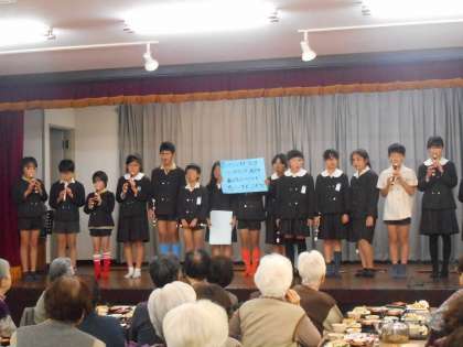 今日は、5年生1組の児童が野田コミュニティに行きました。お年寄りの昼食サービスの時に、5年生が訪問しています。今回は、リコーダーの演奏と「ふるさと」をお年寄りの方々と一緒に歌いました。楽しい一時を過ごすことができました。(校長室より 11月30日)