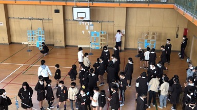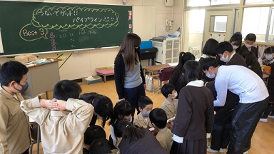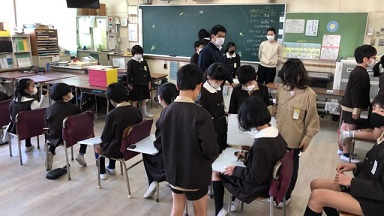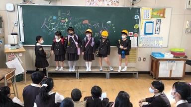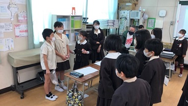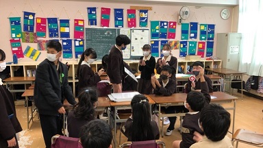 お店は学級ごとですが、回っていくときは縦割り班で回ります。6年生の班長を中心に、低学年の子どもたちにやさしく接しながら回っている姿がほほえましいです。