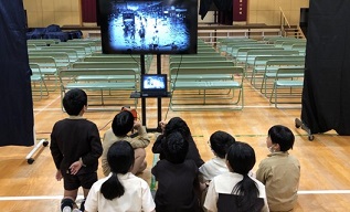 エンディングは、担当の子どもたちが校長室からオンラインで配信しました。 -