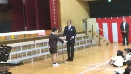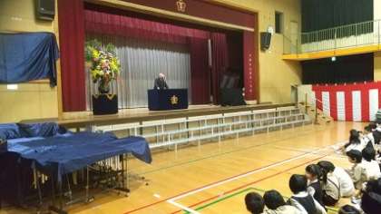 120周年の記念式典は、明日ですが、5・6年生だけの出席になるので、今日の1時間目は、全校児童が集まっての式典を行いました。