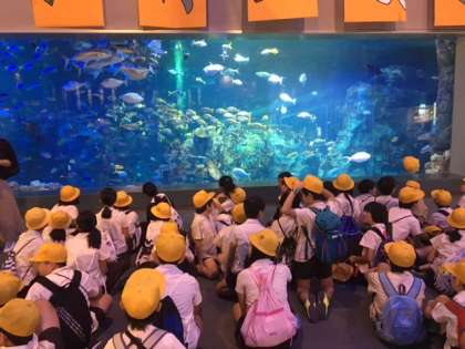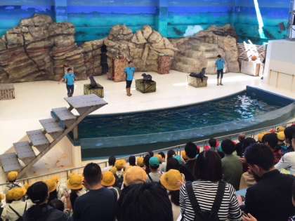 活動班にわかれて昼食、そしてアシカショーを見て、館内をじっくりと見学します。