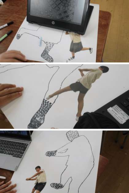 図工科の時間は、ゼンタングルというペン画の技法を使って絵を描きました。