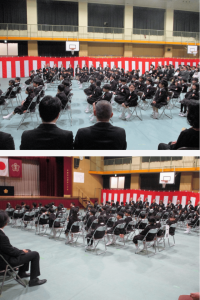 いよいよ入学式が始まり、1年生が講堂へ入場しました。中には、少し不安そうな表情の子もいましたが、保護者の方や会場のあたたかい雰囲気に包まれ、落ち着いて入場することができました。席に着くと、周りを見なが...