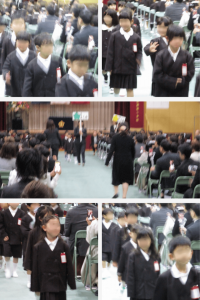 入学式を終え、1年生が講堂を退場しました。入場のときよりも少しほっとした表情で講堂をあとにし、教室に向かいました。中には、保護者の方を見つけてうれしそうにする姿や、にこっと笑顔を見せる子どもたちの姿も...
