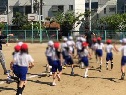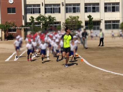 ゲストティーチャーの先生といっしょに走りました。風も爽やかで気持ちがいいです。みんなはりきっています。