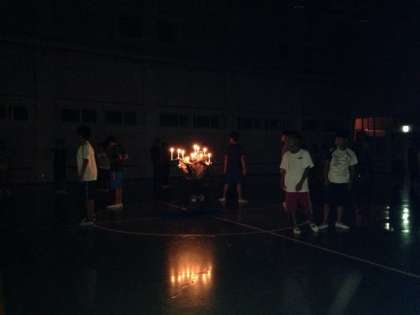夕食は、ミンチカツとシチュー。楽しくいただきました。キャンドルファイアーはみんなが一つになり、たいへん盛り上がりました。よく頑張りました。