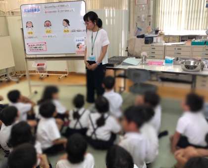 2年生の耳鼻科検診が始まります。みんなすごく静かに保健室で検診のお話を聞いています。