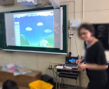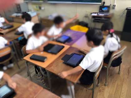 朝から通常通りの授業を実施しています。ICTサポート支援員さんにも来てもらい、タブレットを活用しての授業です。