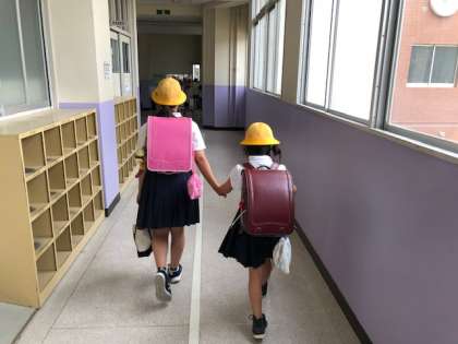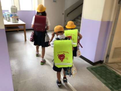 1年生は、高学年のお兄さんお姉さんに教室まで迎えに来てもらって地域子ども会の教室に行きます。