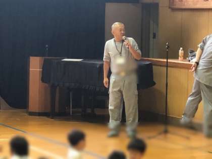 区役所の防災担当の方に来ていただき、お話を聞きました。最後に質問にも答えていただきました。