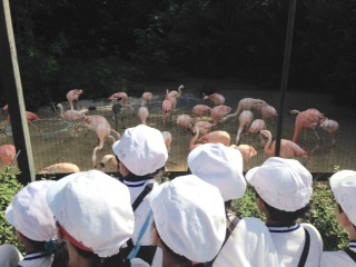 フラミンゴ、キリン、シマウマ、ライオンなど見ました。