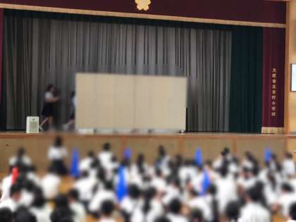 舞台の上のパーテイションに隠れた人数を当てます。はじめは簡単でしたが、だんだんと難しくなりました。楽しくできました。