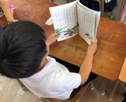 1年生は、「大きなかぶ」のお話を学習しています。みんなで力を合わせて、大きなかぶがやっとぬけました。みんな上手に音読できます。
