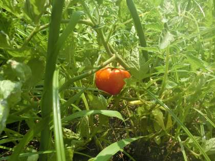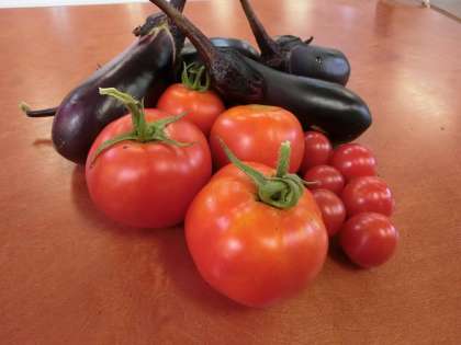 真っ赤なトマトが!他にもナス、ミニトマトも!とてもおいしそうだったのでプチ収穫祭をしました。