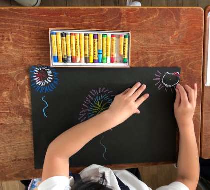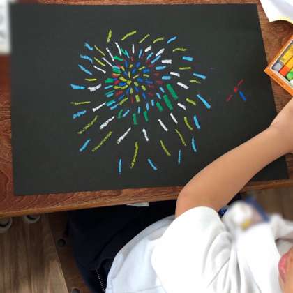 1年生は、パスを使って花火を表現しました。