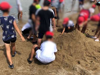 砂山アート制作中!