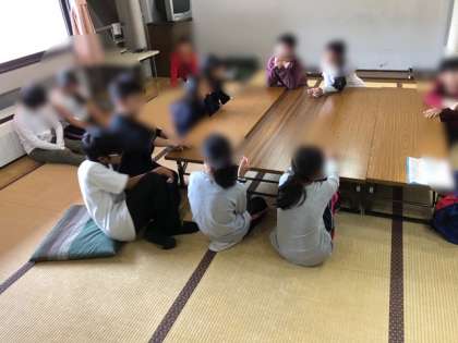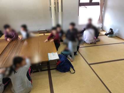 飯ごう炊さんに向けて、班別ミーティングをしています。
