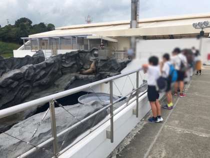アシカのお食事タイムと体重計測をしていました。