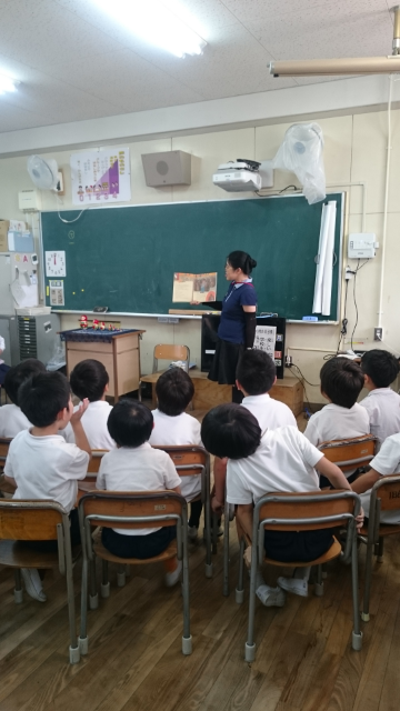 今日は、ボランティアの方に来ていただき、6年生は「炎をきりさく風」というボストンマラソンを初めて走った女性をテーマにした絵本を、2年生は韓国を舞台にした絵本や日本の昔話を読んでいただきました。