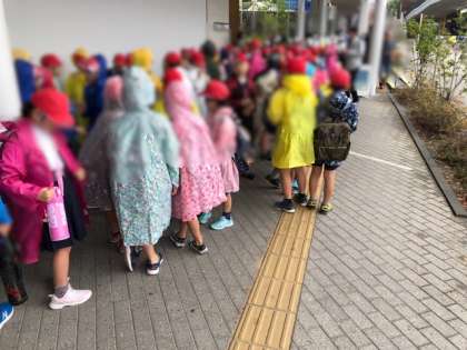 ほとんど雨は降っていませんが念のためにカッパを着て移動します。