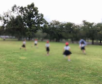 広い芝生で走りまわりました。