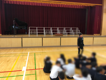 今から中学校の文化発表会合唱コンクールのリハーサルを見せてもらいます。中学3年生の合唱です。楽しみです。