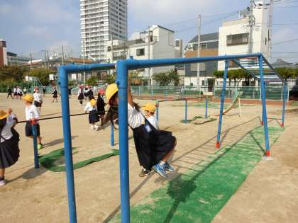 てつぼう、うんてい、遊具での遊びの様子です。