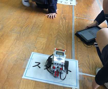 タブレットでプログラムを組んでロボットカーを動かしました。スタートから出発し、チェックポイントで止まってゴールまで進みます。グループで協力して楽しく活動できました。