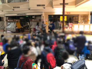 本校以外にも3つの小学校が来ています。受付待ちです。