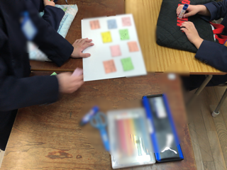 今朝の集会の時間にたんぽぽ班で集まって6年生に渡すメッセージを作りました。1年生から5年生の一人一人が考えたメッセージを貼っていきました。喜んでもらえるように心を込めて作りました。